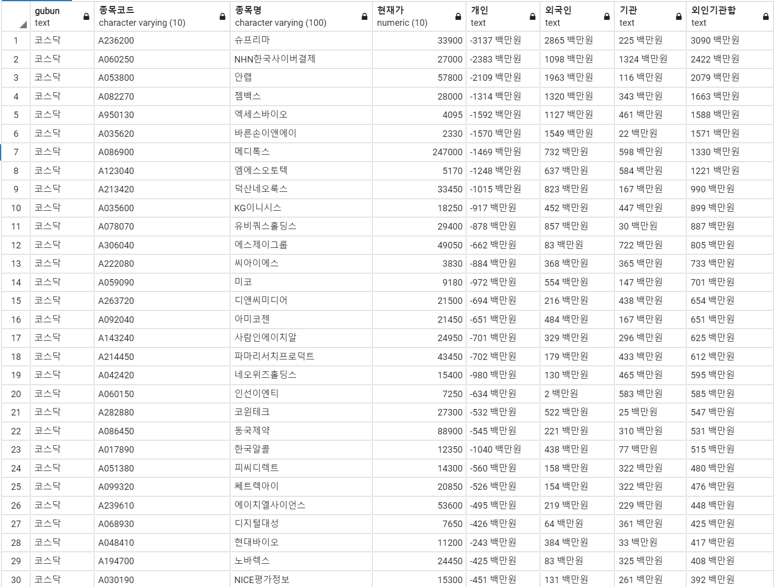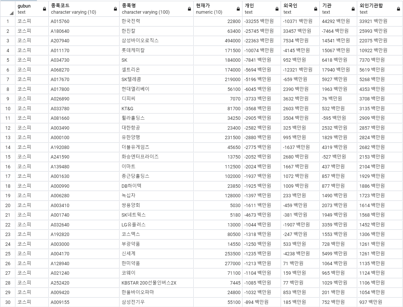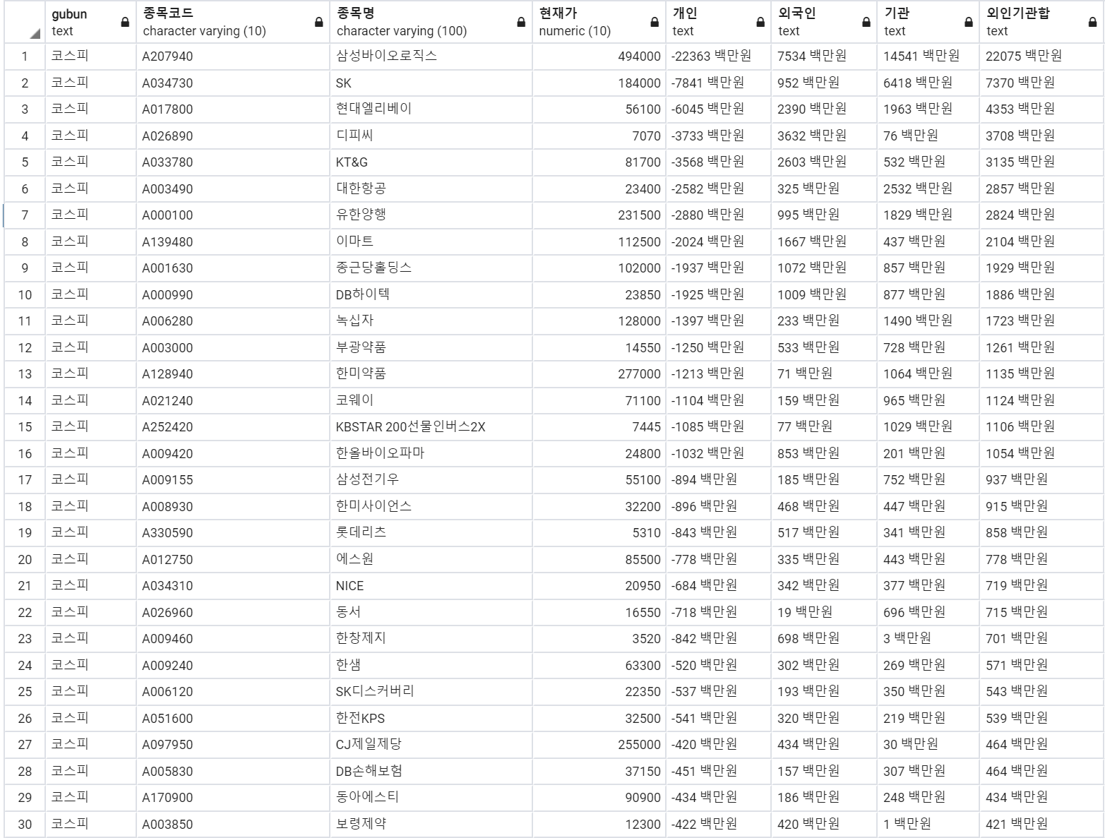 6. 기관 순매도 상위